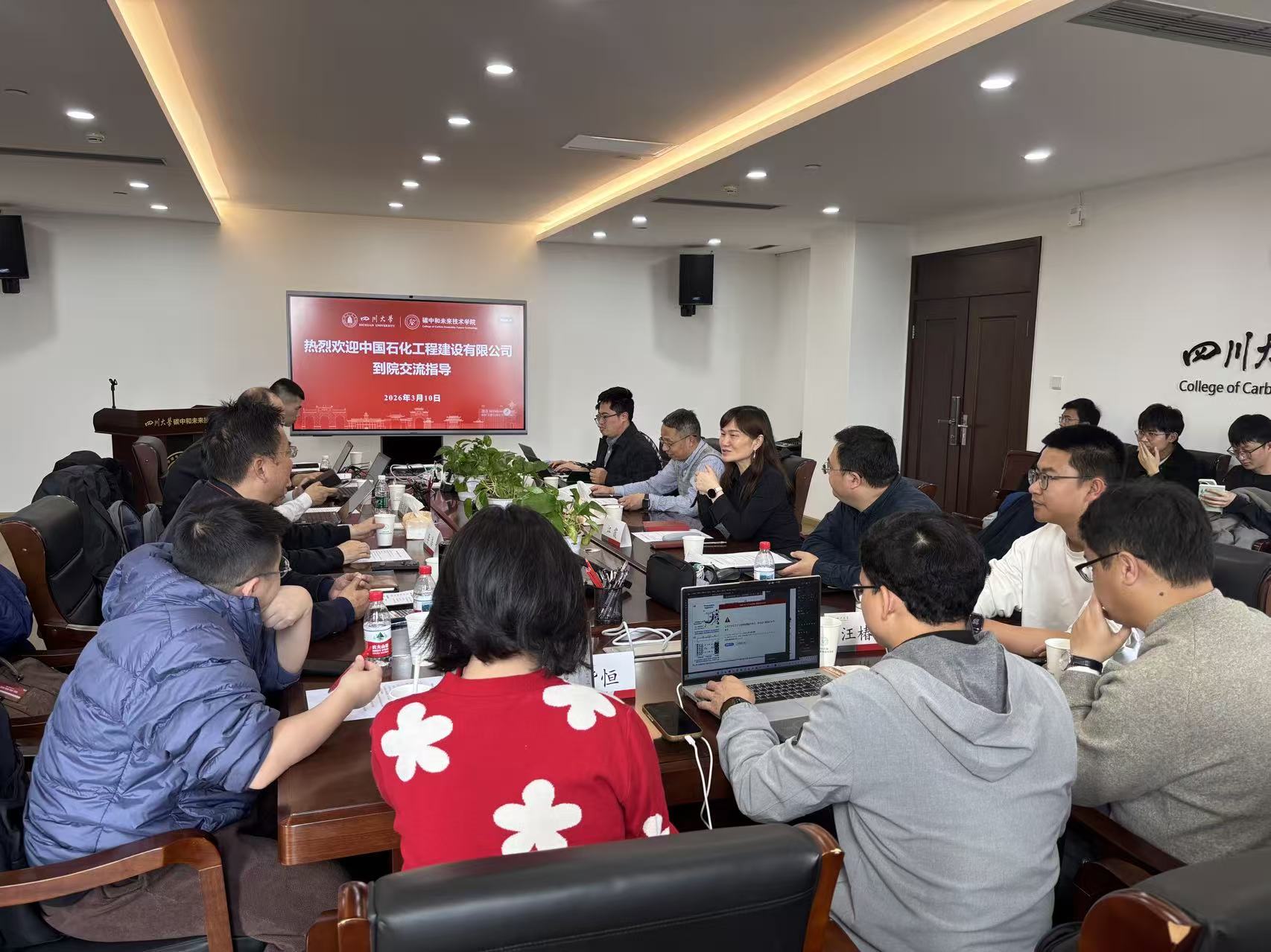 ,就碳中和技术工程转化展开交流。我院常务副院长江霞教授、院长助理王邦达副研究员,以及刘勇军副教授、李剑平副研究员、郑峻峰副研究员、常玉龙副研究员、靳紫恒副研究员等师生20余人出席交流会。交流会由江霞主持。