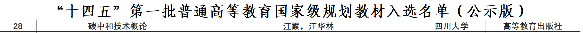 近日,教育部公示《“十四五”普通高等教育本科国家级规划教材拟入选名单》,我院江霞教授和华东理工大学汪华林院士联合主编的《碳中和技术概论》成功入选“十四五”普通高等教育本科国家级规划教材。本书由日韩av-日韩成人网-日韩无码av